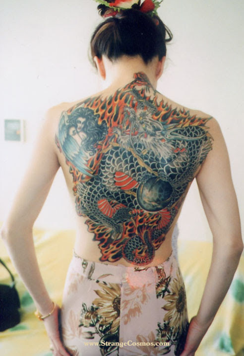 Sexi Girl With Dragon Japanese Tattoo Style In Full Back
